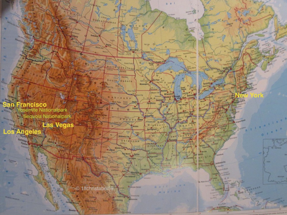 Mitte April geht’s von Zürich direkt nach Los Angeles. Dort bleiben wir eine gute Woche, dann geht’s mit dem Mietwagen an der berühmt berüchtigten Küstenstraße Route 1 nach San Francisco. Dort bleiben wir auch wieder eine gute Woche und ziehen dann weiter zum Yosemite National Park, danach weiter zum Sequoia National Park und beenden den Roadtrip in Las Vegas. Nach ein paar Tagen Glücksspiel und Grand-Canyon-Gucken fliegen wir noch für eine Woche nach New York. Dort geht’s dann Mitte Mai wieder zurück nach Zürich.