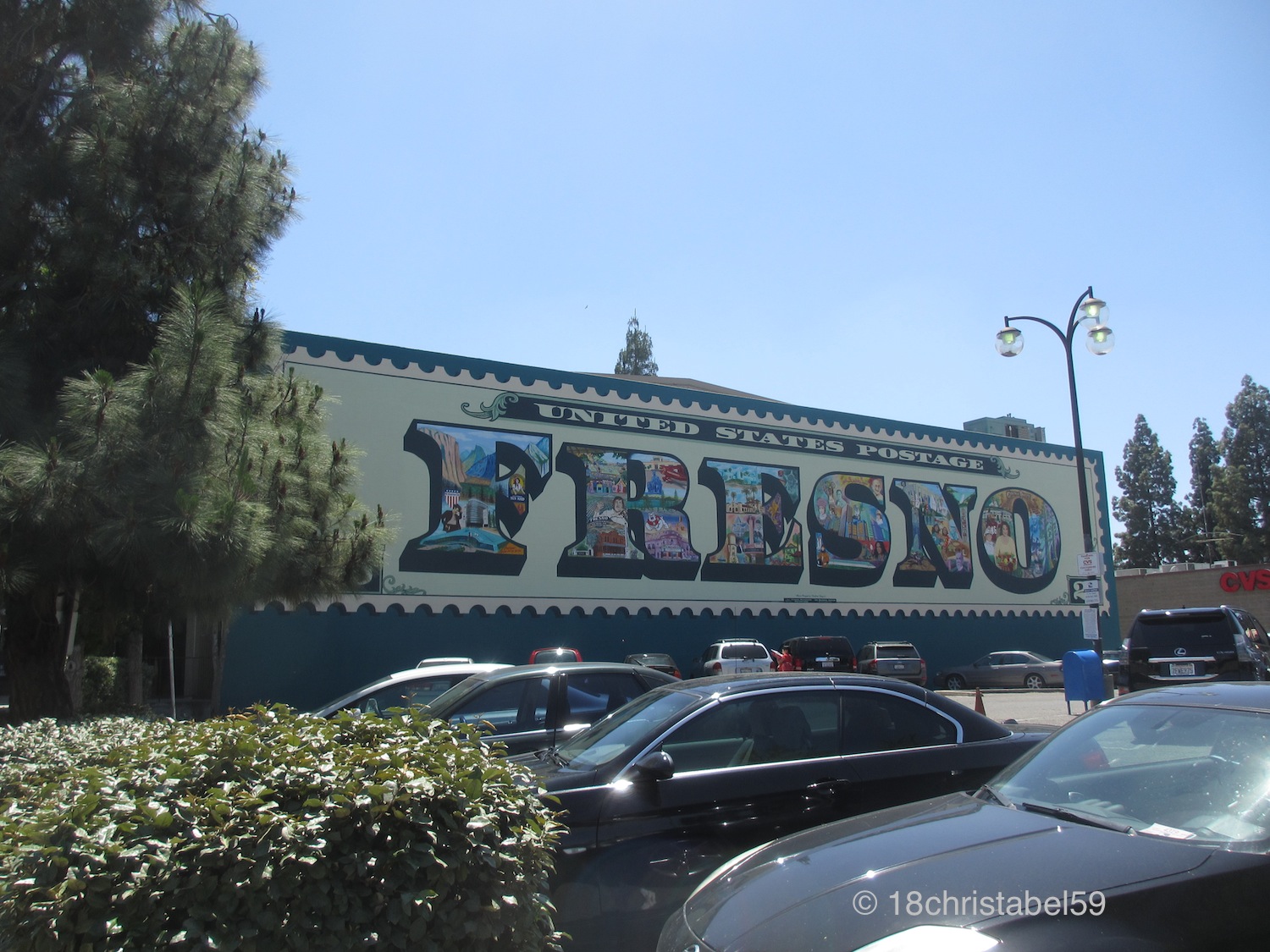 Am nächsten Tag ging’s durch die gelbe, felsige Hügellandschaft vorbei an einer Art Tafelfelsen, weiter nach Fresno, wo im Visitor Center (ein alter Wasserturm nach Wormser Vorbild) ein älterer Herr uns erzählt hat, wie man am besten zum Sequoia und Kings Canyon National Park kommt. Der war richtig begeistert, auch von Deutschland, weil er eine holländische Frau hat, mit der er durch Deutschland und Österreich nach Holland gefahren ist. Abgesehen von dem echt coolen Wasserturm, mit einer kleinen Kunstausstellung, hat Fresno jetzt nicht so viel zu bieten. Ein kleines Civic Center, wo um die Mittagszeit echt viel los war, ein Baseballstadion, wo gerade ein Spiel stattfand, und ziemlich viele leere Einkaufsstraßen mit alten reich verzierten Hochhäusern aus den 1930ern? Oder noch früher. Aber die stehen alle leer oder werden nur noch selten genutzt.