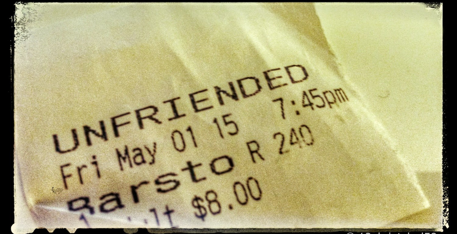 Als wir in Barstow zwischengestoppt haben, war die einzige Sehenswürdigkeit das Kino nebenan. The Hollywood Theatre mit sechs Minisälen. An der verglasten Kasse haben wir die Tickets für die Abendvorstellng von „Unfriended“ geholt und zwei Kassenbons dafür bekommen, das waren die Tickets. Die wurden beim Eintritt zerrissen is man bekam einen Schnipselteil wieder.
