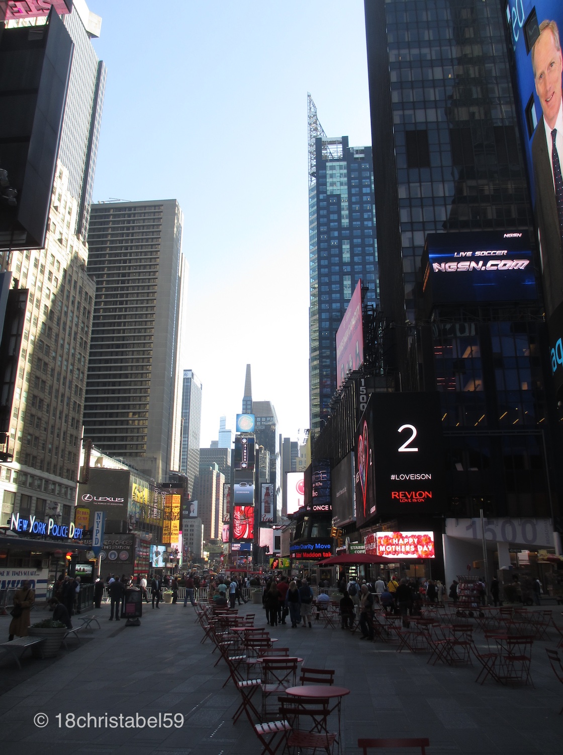 Weil wir vom Flug und Nichtschlaf echt platt waren, haben wir einen langsamen Start hingelegt, um die Stadt kennenzulernen: Wir sind die 42th Street gen Osten, am Times Square mit seinen überdimensonalen Leuchtreklametafeln vorbei und haben etwas Broadwayluft geschnuppert.