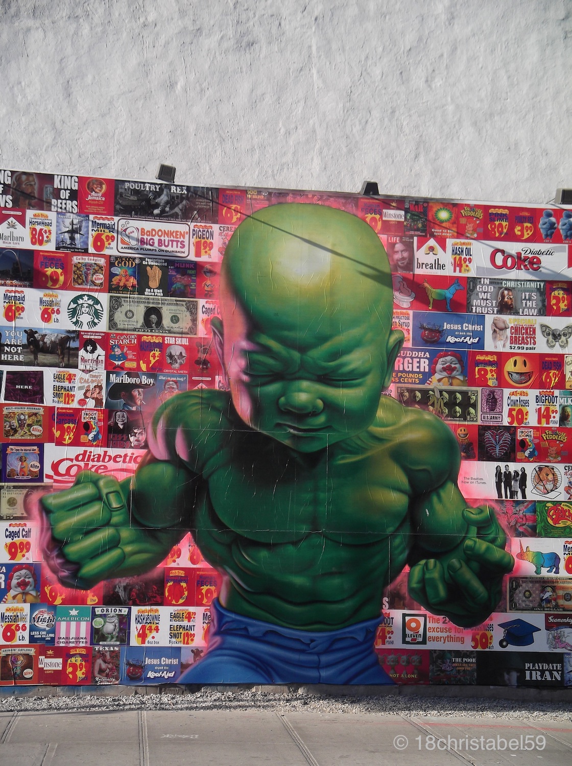 Deswegen ging’s am späten Nachmittag noch mal zum East Village. Ja, wir machen dieses Mal vieles doppelt. Aber dieses Mal wollten wir nach Urban Street Art Bildern schauen. Mein Freund wollte ursprünglich eine Tour machen, aber dann hätten wir ja das Naturkundemuseum zeitlich nicht mehr geschafft, für das wir ja den City Pass hatten. Aber selbst laufen ging auch. Wir haben echt einige Sachen gefunden. Man muss sich vorher nur mal grob im Internet schlau machen, mit dem Handy ein paar Screenshots von den Orten machen und dann mit offenen Augen durch die Viertel ziehen. Dann sieht man eigentlich viel.