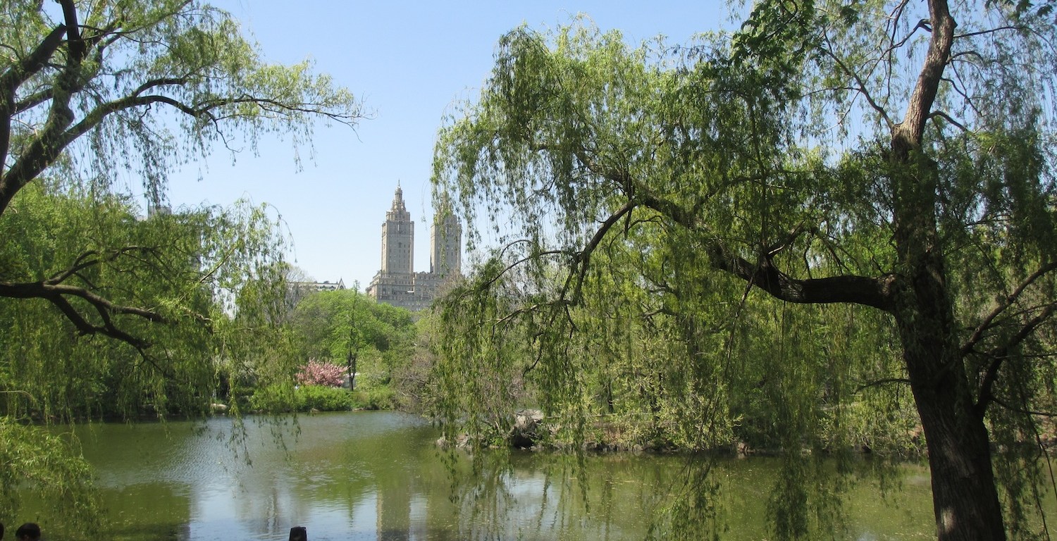 Oder ihr lauft an der Westseite des Lakes entlang vor den hohen Art-Deco-Häusern der Upper West, die einen wieder ganz klein wirken lassen. Hier habt ihr auf der einen Seite die Romantik des Central Parks mit teils Flieder überzogenen Arcaden zwischen den grünen Bäumen vor dem blau glitzernden Lake. Und auf der anderen Seite reihen sich Hochhäuser aneinander und wachen an der Central Park West Avenue.