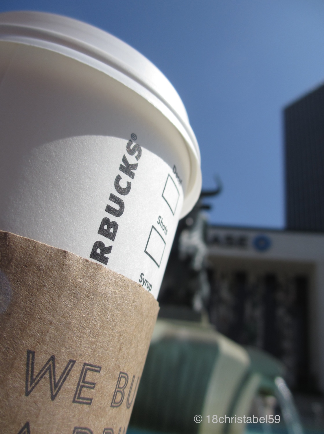 Für alle Nicht-Starbucks-Fans hier ein kleines 1×1. Diese Kaffee-Kette bietet verschiedene Kaffeespezialitäten, Tees, Smoothies und Frappuccinos in drei Größen an: tall, grande, venti. Mal abgesehen davon, dass die deutsche Übersetzung für alle diese Größenbezeichnungen „groß“ ist, kann man die Größen wie folgt übersetzen: klein, mittel, groß. Plus nochmal alles eine Nummer größer als bei unseren Starbuckshäusern, weil die Amis alles größer machen, also in Wirklichkeit: mittel, groß, riesig. Alles klar? Wenn nicht, ist egal, weil ich eh meistens den amerikanischen mittelgroßen Kaffee ohne Schnickschnack geholt habe.