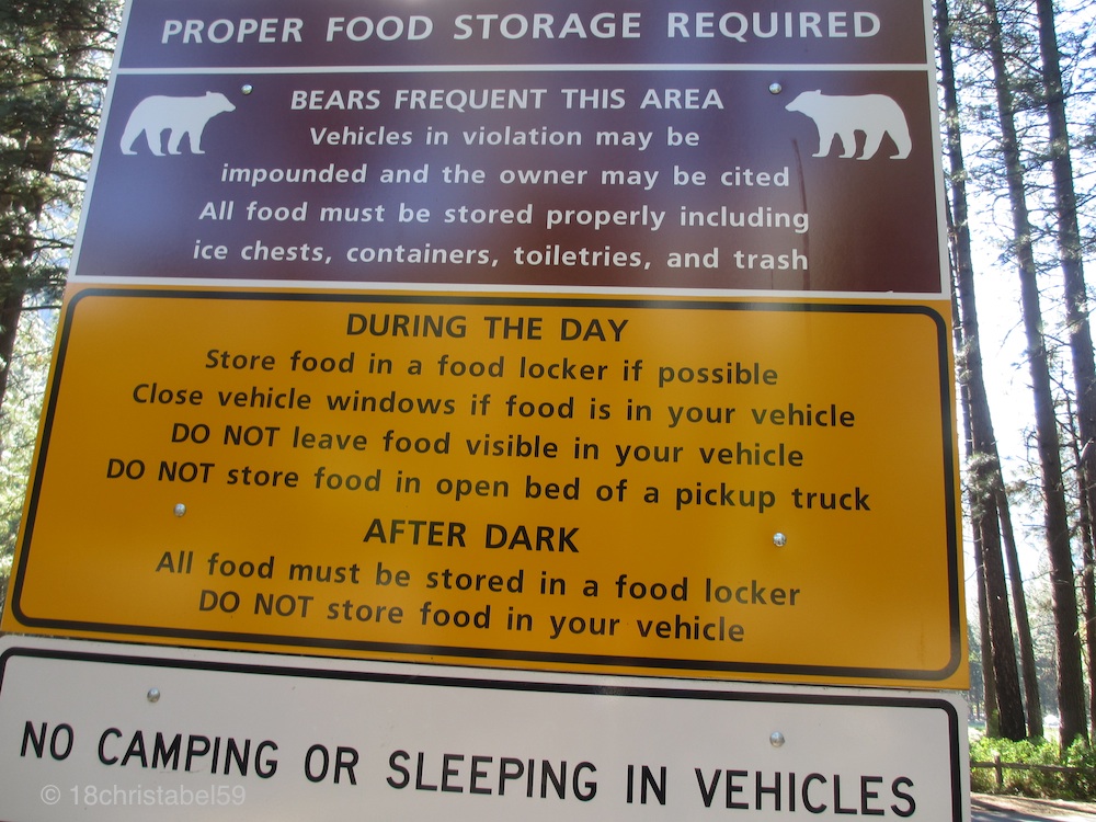 Aber eins sag ich euch: Die Bären, Waschbären und vor allem diese grauen Eichhörnchen, ey, die sind doch nicht doof. Die beobachten uns Touristen, wie wir nach etlichen Versuchen dann doch den Deckel aufkriegen, und dann wissen die Tierchen das auch. Klar, der Bär kommt mit seiner Pranke vielleicht nicht an die Hebelvorrichtung des Deckels, aber dafür die Eichhörnchen und Wäschbären. Und die machen entweder ne Räuberleiter oder klettern auf die Rücken der Rehe und Bären und dann machen die jeden Abend, wenn alle Touristen schlafen, eine Riesenresteessenparty! Und die Bären in Sequoia, die wie Kühe Gras futtern, die machen das doch nur showmäßig. Die tun sich abends auch zusammen und plündern die Mülleimer. OK, kurz gesagt: In den Nationalparks wird auch getrennt.