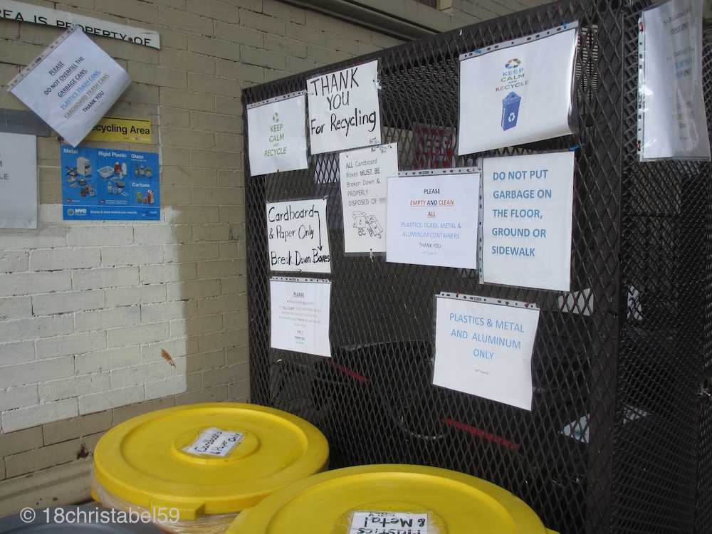 Also alles in allem: In den USA wird der Müll auch getrennt. So grob. Nur beim Hausmüll dann doch nicht. Und der wird (in New York) an Müllabfuhrtagen in kleinen Müllsackhügeln auf dem Gehweg am Straßenrand gestapelt. Sieht besonders schick aus. Naja…