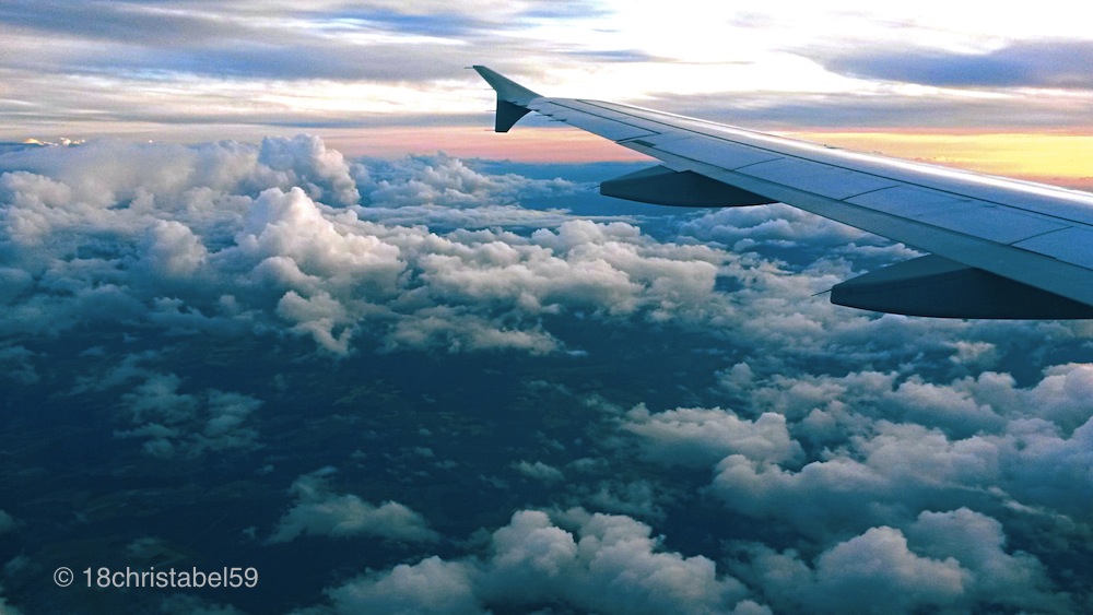 Und über dem Flügel des Airbusses färbt die Sonne weiter den Horizont in die goldenen Farben des Regenbogens. Ich bin auf dem Rückflug aus der Schweiz, dort, wo mein Freund wohnt. Ich denk an ihn, wenn ich auf die Wolken blicke.
