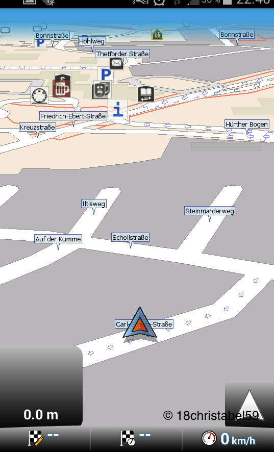 Das ist eine kostenlose Handy-App, mit der man offline und nur per GPS den Weg findet. Ich hatte schon mal darüber geschrieben, als ich ein paar praktische Apps zusammengestellt hab. Sobald man sich die App runter geladen hat, und die kostenlose Variante nutzt, muss man leider doch erst mal ins Internet, um sich die Karten, die man für die Reise braucht, runterzuladen. Das kann bei mehreren Staaten schon etwas länger dauern, aber die Karte für Deutschland oder andere europäische Länder gehen ruckizucki.