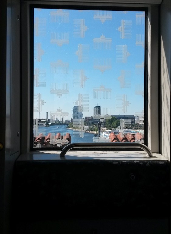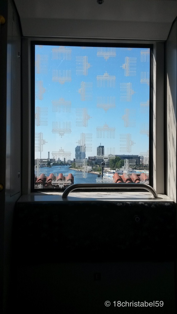 Vom Hotel aus ging’s mit der nächstgelegenen U-Bahn in Richtung Osten, zum Ostbahnhof. Wenn man in so einem schwitzigen Sommer mit den öffentlichen Fährt und man eh vor lauter Hitze nicht so viel redet, fallen einem die Unmengen von Touristen auf, die sich in der Hauptstadt tümmeln – Familien, Schulklassen, Reisebusse… Und man erkennt sie alle an den typischen Touri-Klamotten: Sandalen/ Flipflops oder bunte Stoffschuhe, Shorts, bunte Shirts, Rucksäcke und zig Shoppingtüten wie die mit dem Ampelmännchen drauf. Ja, ok, wir waren ja in dem Moment auch irgendwie Touris. Nur hoffe ich, dass wir nicht so aufgefallen sind…