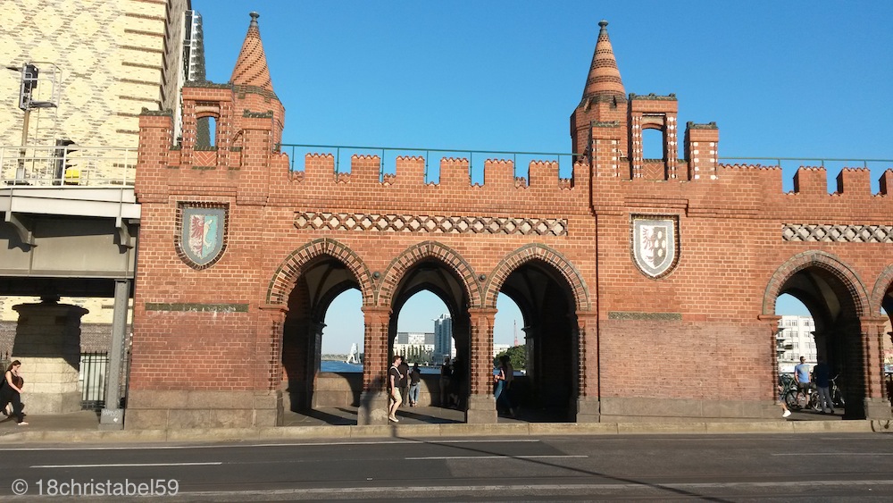Für mich ist das Tollste, wenn man über die Oberbaumbrücke fährt: Die U-Bahn verlässt die buschigen Alleen und schattigen Seiten der Altbauten und schwebt, ok, rattert im strahlende Sonnenlicht über die rote Ziegelsteinbrücke, deren spitze Rundtürme orangerot leuchten. Schaut man nach links erkennt man von weitem die Silhouette des Fernsehturms, dessen Spitze aus den anderen Hochhäusern unverkennbar heraussticht. Unter der Brücke glitzert die Spree in einem sanften Dunkelblau. Gleichzeitig muss man aber auch nach rechts blicken, weil man hier die sogenannten Molecule Men sieht, die in der Spree seit 1999 stehen. Wenn man ganz genau hinschaut, sieht man dahinter die Bäume des Plänterwalds über denen noch das Riesenrad ragt. Der Plänterwald ist ein still gelegter Freizeitpark aus DDR-Zeiten, in dem seit Jahren alle Fahrgeschäfte vor sich dahin vegetieren und vergammeln. Dadurch bekommt der Plänterwald besonderen Grusel-Charme und Berlin eine neue Touri-Attraktion. Aber die Fahrt über die Oberbaumbrücke entlockt einem schon das erste Berlin-Feeling.