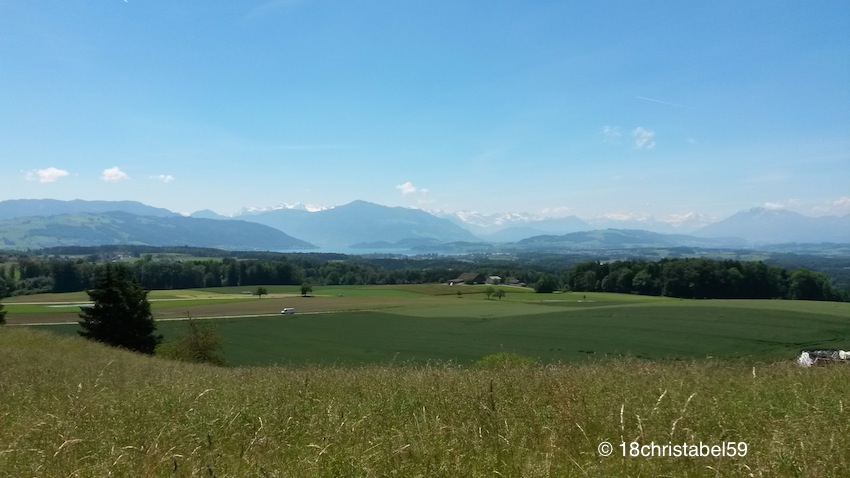 Und das wurde auf dem Heimweg noch von der Schweizer Traumlandschaft getoppt. Als ich den Feldweg wieder runterrollte, habe ich Fotos gemacht, hab immer wieder gedacht: Wahnsinn, du bist in der Schweiz! Wie schön! Du bist jetzt hier Zuhause! Was ein schönes Land! Wenn man die Schweiz so sieht und kennenlernt, dann kann ich gar nicht anders als begeistert und absolut glücklich zu sein. Es ist so ein wunderbares, kribbelndes Gefühl, wenn ich das alles nach gut drei Wochen das erste Mal so richtig realisiere. Ich bin jetzt hier, in einem traumhaft schönen, kleinen Ländle, das so viel zu bieten hat. Mit meinem Freund und den Miezen.