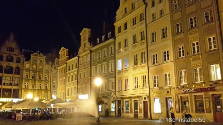 Zum Dessert gab es einen kleinen Abendspaziergang um das Rathaus. Im Gegensatz zu Bautzen, wo abends um acht der Hund erfroren war, steppte hier der Bär. Die Kneipen waren voll, überall hörte man lautes Gebrabbel der Menschen, die sich einen abendlichen Drink genehmigten, es war irgendwie Leben in der Bude und hatte was von entspanntem Urlaubsfeeling. Dazu Musik von den Straßenkünstlern wie den Feuerspuckern oder einer kleinen 2-Mann-Band: Er spielte Gitarre, sie sang polnisch. Aber wie! Andere Passanten und ich waren ganz baff von ihrer zarten, leicht rauhen Stimme, die durch den Breslauer Nacht schwebte….