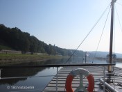 Am nächsten Morgen ging es früh(er) raus, weil wir ja was Besonderes vor hatten: Elbeschippern mit einem 90 Jahre alten Raddampfer. TschuTschu! Abfahrt war 10 Uhr und ich drängelte meinen Freund, weil er wieder bummelte und mir nicht glaubte, dass wir 30 min früher am Anleger sein müssten. Tja, er musste es dann glauben, als wir die ganzen Rentner (Sorry, meine liebe Familie) da haben in einer fetten Menschentraube stehen sehen. Die waren schon ganz ungeduldig, dass die Matrosen doch mal endlich alle auf’s Schiff lassen sollten. Und schon vom Anleger aus, noch vom Land aus gab es Anweisungen, wo denn bitte ein gutes Plätzchen erhascht werden soll. Und kurz vor 10 wurden die Leute auf Schaufelraddampfer namens Dresden (kein Witz!) gelassen, der drittälteste der ganzen Schaufelraddampferflotte. Wir selbst waren inmitten all dieser Rentner und haben mit den paar anderen Jüngeren den Altersdurchschnitt auf vielleicht 40 senken können. Trotz der plötzlich rüstigen Rentner, die mal hurtig ihr Wunschplätzchen ergattert hatten, konnte mein Freund noch vorne links an Deck ein Plätzchen sichern.