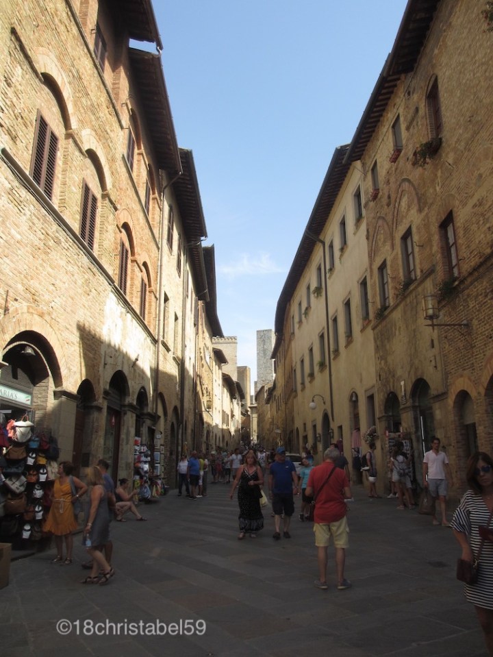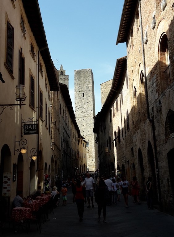 Auch super ist der seitliche Eingang über die Via S. Martino ins echt rustikal-romantische Zentrum von San Gimignano mit seinen gold-gelben und hohen Backsteinbauten aus dem Mittelalter. Und das Gute: Hier waren noch nicht so viele Touris und man konnte durch die ruhigen, leeren Gassen schlendern.