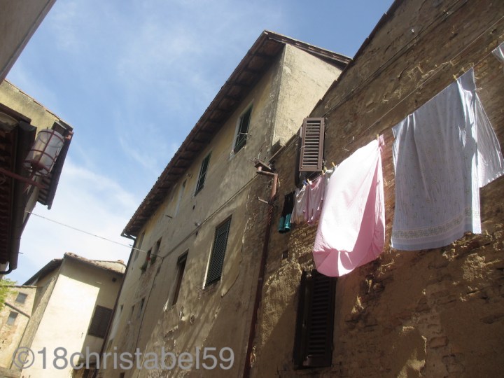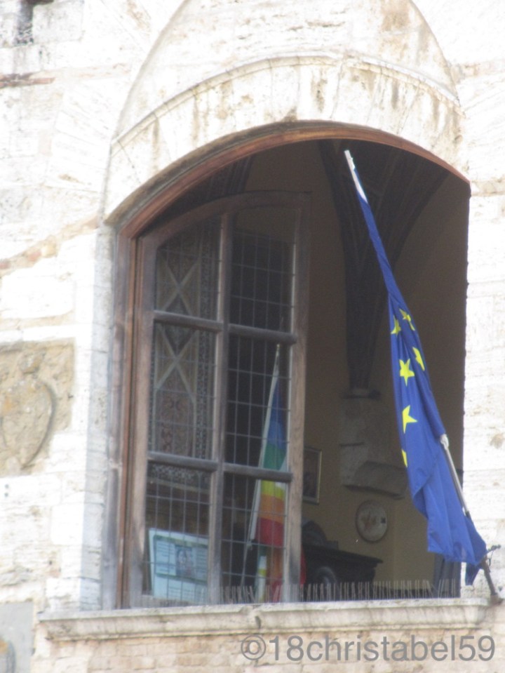 Genau das haben wir auch gemacht. Wir haben uns mit unserem halbgeschmolzenem Eis auf die Treppe am Rathaus unter die Türme San Gimignano gesetzt, am Piazza del Duomo und die Leute beobachtet. Interessant. Einfach selbst mal machen. Einblicke gibt es da, die man so nicht zu sehen bekommt, oder sehen will. Je nachdem. Cool fand ich, dass man durch ein offenes Fenster im ersten Stock des Rathauses eine Regenbogenflagge sehen konnte, die da an der Wand gelehnt war. Es überraschte mich positiv, in einer solch historischen, traditionellen (und vielleicht von mir erwartet konservativen) Umgebung eine solche Toleranz zu sehen. Fand ich super.