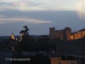 Nach einer Runde über das Weinfest, sind wir wieder runter in die Stadt und haben in einem kleinen Restaurant, das wir schon auf unserem Hinweg entdeckt hatten, zu Abend gegessen. Es gab ein Zwei-Gänge-Menu mit Ziegenkäse und Salat als Vorspeise und Schweinefilet und Gemüse für mich bzw. Entrecôte und süsse Crème als Dessert für Lukas. Danach sind wir sehr, sehr weiter durch die Gassen geschlendert, in denen die Bars gegen 23 Uhr langsam zu machten, und an einem ganz anderen Punkt der Stadtmauer herausgekommen. Da ja unser Hotel gegenüber Stadtmauer war, nur am anderen Ende, musste wir nur der Mauer nach links folgen.