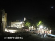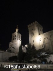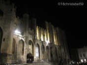 Ab dem Place Croix Belle wurde es dann wieder touristischer, da waren nämlich die Tische der Restaurants aufgereiht und voll, die Strassen waren heller beleuchtet, der huckelig-wacklige Fussweg wurde zum glatten, polierten Steinboden, die Häuser wirkten gepflegter, heller, freundlicher. Egal, in welche Strasse wir bogen, überall waren Leute, vor allem auf den Plätzen war das Gequassel in der lauen Sommernacht zu hören. Überall hatten Restaurants ihre Tische auf den Strassen und Plätzen aufgestellt, es wurde lecker Essen aufgetischt, das mit viel Erzählerei verzehrt wurde, die Leute standen teils Schlange, um einen der begehrten Plätze zu ergattern. Genau das ist es, was ich an Frankreich mag. Das Leben findet im Sommer halt draussen statt. Und so sind durch die pulsierenden Gassen der Altstadt bis zum Papstpalast spaziert. Der Platz davor war ein einziger Treffpunkt für Touristen und Einheimische, mit wieder kleinen Strassenrestaurants unter majestätischen Platanen und mit Gitarrenmusik eines Strassemusikers, die über den ganzen Platz hallte. Die Lichter der Stadt tauchten den Platz und den Palast in ein helles Licht, was besonders elegant wirkte. Der Papstpalast ist an sich schon ne Wucht, ein riesiger Kasten, der die Stadt dominiert. Wie der Domain Köln, nur bulliger. Das Teil macht schon Eindruck.