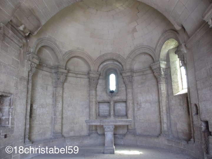 Dreht man sich dann um, hat man die beste Aussicht auf die Skyline Avignons, denn der Papstpalast und der Park Roche de Dome überragen die Dächer der Stadt und geben ein echt traumhaftes Bild ab. Ja, kann man auch fotografieren, wenn man möchte. Hübsch, wenn auch simple, ist auch die kleine Kapelle mit den bunten Fenstern, in denen sich Tauben putzen und die farbige Schatten auf den rustikalen, leicht staubigen Boden werfen.