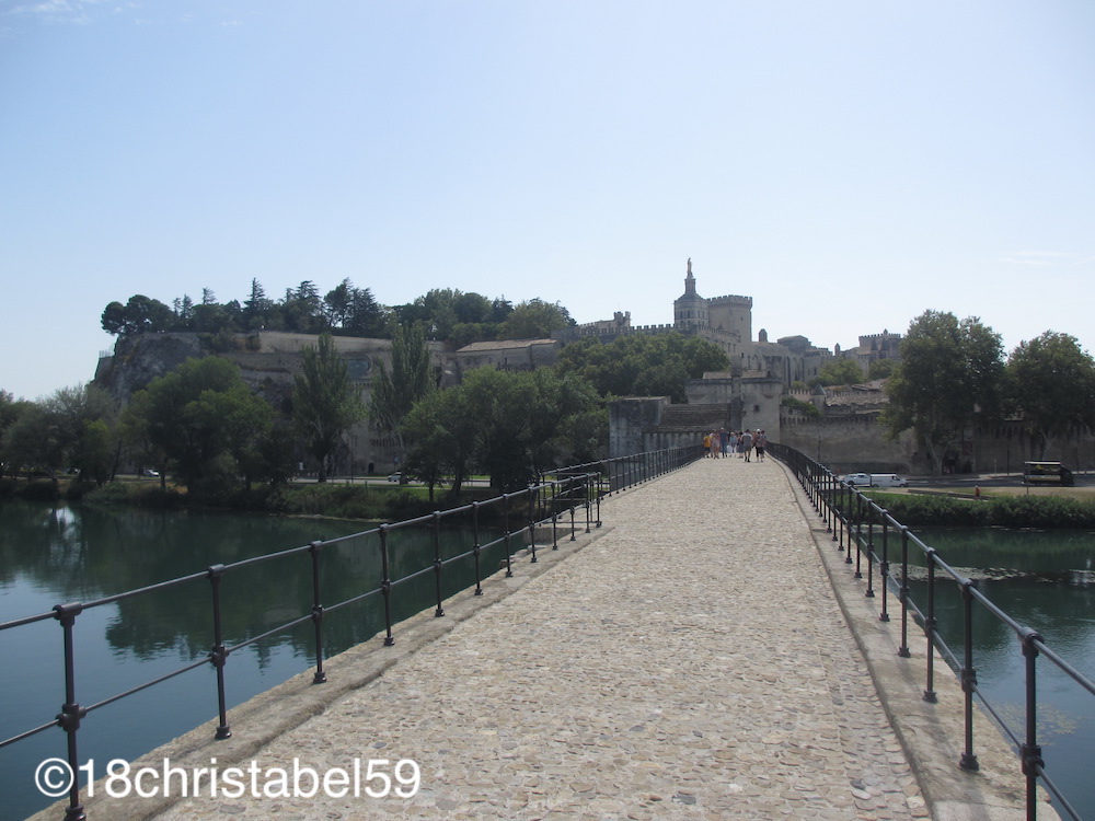 Oder wie sie in richtig heisst: Pont de St. Benezet. Ja, des Heiligen Benedikt. Der Schäferjunge Benezet soll angeblich Gottes Stimme gehört haben, die ihm sagte, dass er da in Avignon ne Brücke bauen soll. Also is er zum Papstpalast gegangen und hat dem Papst davon erzählt und bat um Geld für den Brückenbau. Der Papst wollte sich aber nicht veräppeln lassen und rückte erstmal kein Geld raus. Er meinte: „Ja, das Geld kriegste, wenn du den Stein da (einen fetten Felsbrocken, der aufm Papstplatz rumlag) zum Wasser bringst.“ Quasi als Grundstein. Und der Benezet hat das gemacht. Heute den schweren Stein und trug ihn zum Fluss und zack war der Grundstein gelegt. Gut, das ist die Legende. Die Brücke wurde wohl eher von einem Kaufmann im Mittelalter gebaut und zwar mit damals modernste und innovativer Bautechnik.