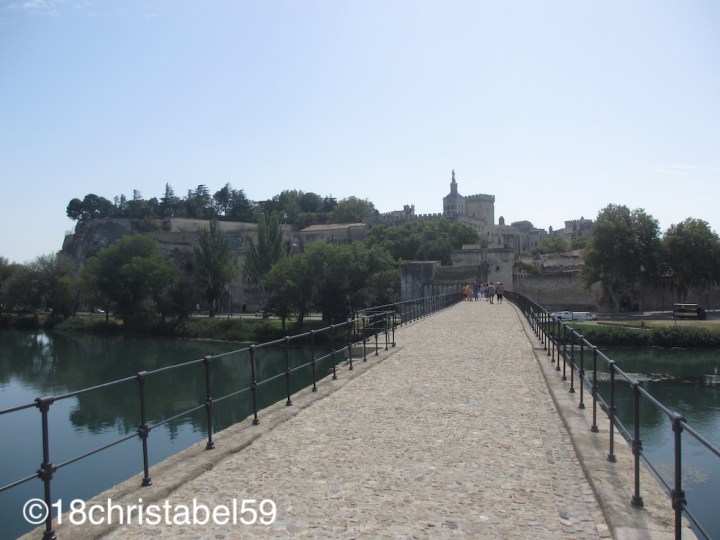 Eigentlich wollten wir durch den Park schlendern, aber die haben den wohl nach dem Weinfest vom Vortag aufgeräumt und deswegen geschlossen. Also nichts mit dem Parkspaziergang. Dafür sind wir dann runter zur Brücke, vorbei an den ganzen Touri-Lavendelläden mit so viel Lila und Lavendelduft, dass man dachte, man wird von einem getrockneten Lavendelstrauss erschlagen. Es gab da in jedem Läden alles möglich mit oder aus Lavendel, Seifen und Handtücher und Stoffpuppen oder kleine Duftsäckchen. Und wir sind halt daran vorbei und zu der Brücke von Avignon gelaufen.
