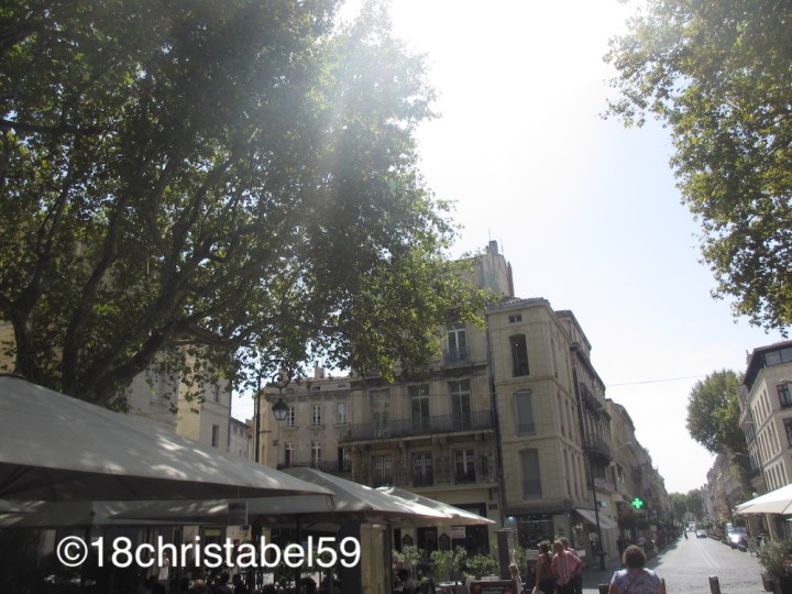 Von da ging es ratzfatz in die Altstadt, durch die Prachtstrasse Cours Jean Jaurès und den Square Agricola Perdiguier mit einer dieser alten Telefonzellen aus London, so schön rot. Der Platz war für einige Einheimische einfach eine Mittagsruhezone unter den alten, schattigen Bäumen.