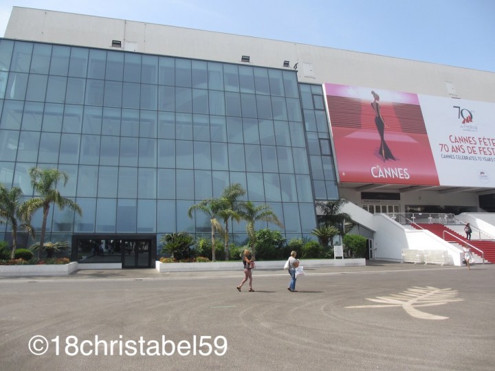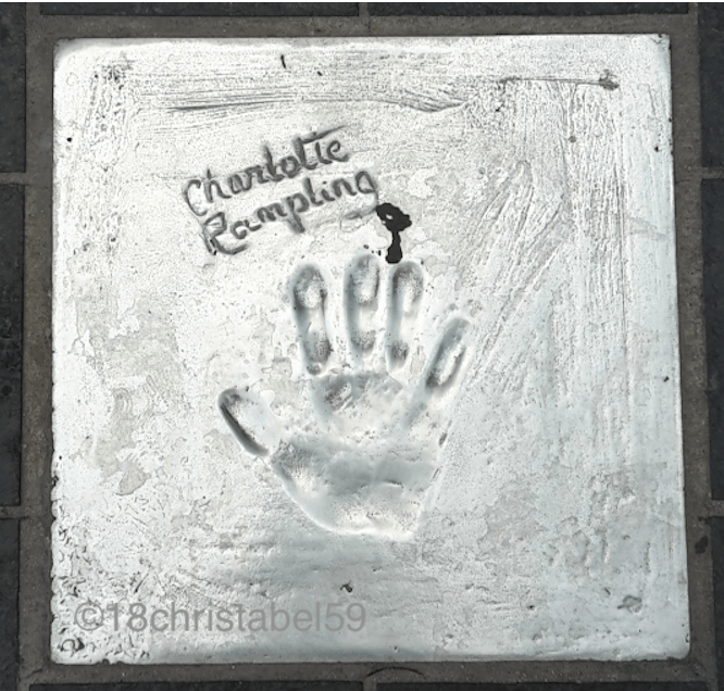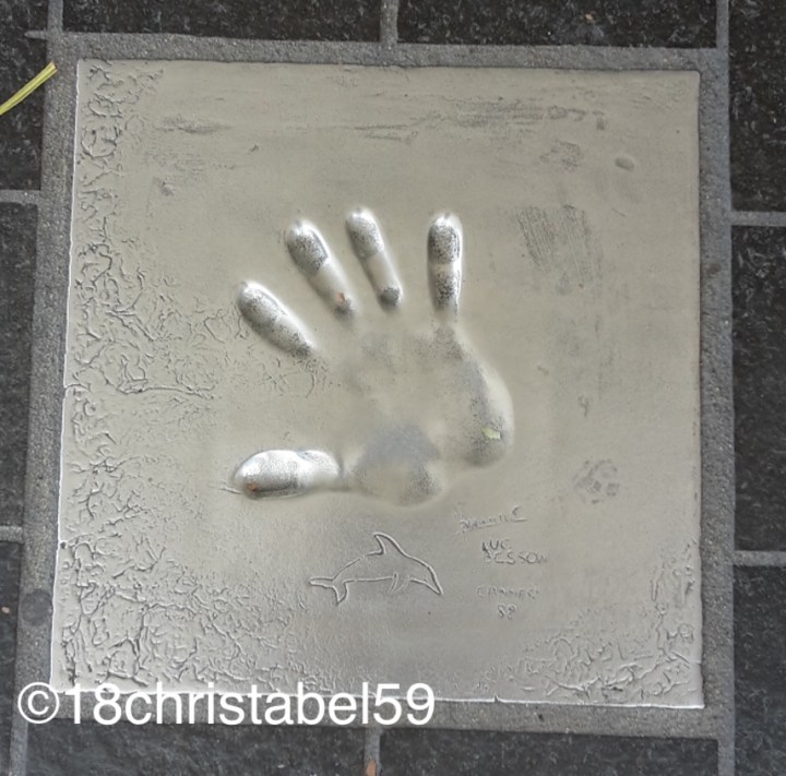 Warum es sich trotzdem lohnt, reinzuschnuppern? Na wegen dem kostenlosen Stadtplan und den absolut grandiosen Filmkameras aus den 60ern, die da ausgestellt waren. Da konnte man voll nah dran. Vielleicht lag das aber auch an dem 70. Geburtstag der Filmfestspiele, dass die Kameras da standen. Und als Filmtante interessierte mich das schon, aber noch interessanter waren die Handabdrücke von französischen und internationalen Filmstars und Regisseuren, die rund um den Palais angelegt sind, so wie am Chinese Theater in LA, nur halt die „Sparversion“. So, so toll, ich hätte am liebsten alle fotografiert, da ich voll aus dem Häuschen war. Ich so voll aufgeregt wie ein kleiner Groupie zu meinem Freund: „Da schau mal, Charlotte Rampling… und David Lynch!“ Und er so völlig ruhig: „Wer?“…