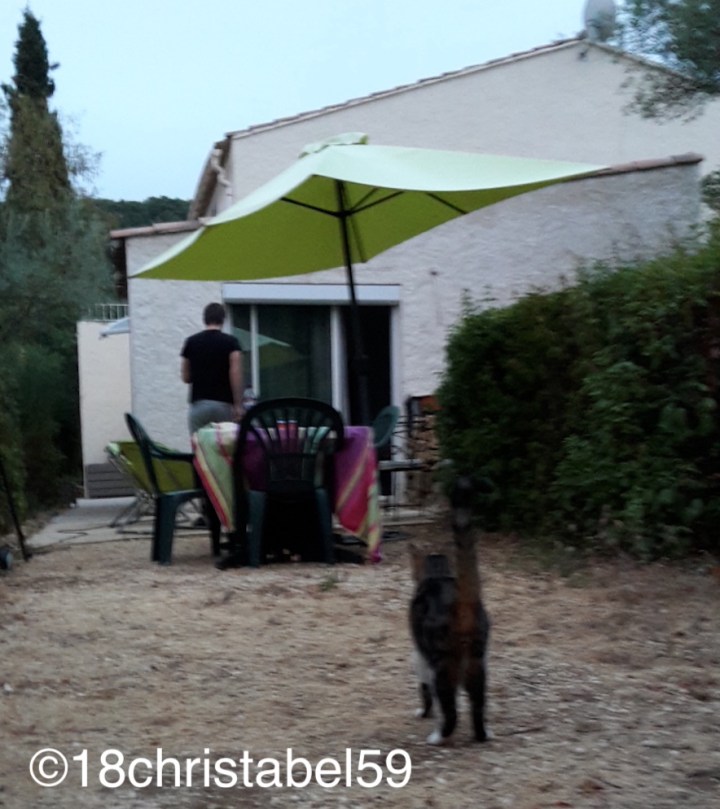 Eigentlich wollten wir nach unserem Cannes-Besuch noch an den Strand, der direkt neben dem Boulevard du Midi Louise Moreau ist. So hatten wir uns das gedacht. Aber bei zwei Stunden Fahrt plus noch BBQ-Nachschub einkaufen, blieb uns dann doch keine Zeit mehr, um in die Wogen der Côte d’Azur zu springen. Also haben wir uns für Einkaufen und Pool an der FeWo entschieden. Dort war es herrlich warm, und dank der Mücken haben wir nur kurz geplatscht. Unsere Vermieter hatten mehrere leicht verwilderte Katzen, eine kam immer am Abend und schlief auf einem Stein (hätte ja auch auf den Liegen schlafen können) und die andere fand uns nicht so koscher. Aber der Nachbarskater tauchte regelmässig zum Grillen auf.