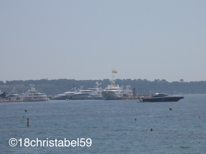 Während der Südfrankreichplanung wollte ich die ganze Zeit auch mindestens einen Tag an die Côte d’Azur. Gut, aufgrund der Distanzen da unten und weil wir immer noch im Urlaub waren, haben wir uns – auch auf Hinweise verschiedener Freunde und der Vermieterin – für Cannes entschieden. Lag halt näher an der Ferienwohnung. Nach meiner kurzen Recherche haben wir ein Parkhaus direkt bei den alten Markthallen im Westen vom Zentrum gefunden, die gerade geschlossen haben, um halb 1 am Mittag. Unser Plan war einmal am Strand runterlaufen und dann durch die Strassen Cannes zurück. Also ging es runter zu Hafen, in dem auch schicke Bötchen lagen, aber die fetten Teile konnte man vor der Küste bewundern und brauchte dafür kein Fernglas. Erst mal ging zum Palais des Festivals, dahin, wo jedes Jahr die goldene Palme von Cannes verliehen wird. In dem Filmpalais is nämlich die Touri-Info, und ich war wieder auf der Suche nach einem Klo. Doch nach der Sicherheitskontrolle (kein Scherz) haben wir recht schnell auf grossen Schildern gesehen, dass es hier auch keine Toiletten gibt (genauso wenig wie in Marseille oder Aix-en-Provence übrigens).