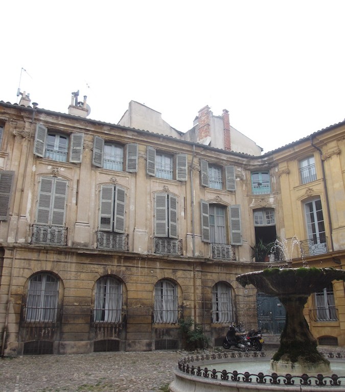 Und bevor es in die Gassen ging, musste ich erst mal wieder, wohin, und schon wieder scheiterte die Suche nach einer Toilette. Die in der Toure-Info gab es nicht, das Toilettenhäuschen auf dem Platz davor und daneben waren ausser Betrieb. Also hiess es erstmal zusammenkneifen. Dafür war ich sofort von der Stadt in den Bann gezogen, sobald ich den Fuss in die erste Gasse gesetzt hatte. Alter Falter, war das hier süss. Ich konnte sofort nachvollziehen, warum der Maler Paul Cézanne hier hängen geblieben ist. Das Zentrum von Aix-en-Provence besteht aus einem Gewirr aus wunderschönen, kleinen Gassen, jede ein Fotomotiv wert sind. Wer mag, kann auch Cézannes Atelier besichtigen, das etwas ausserhalb des Zentrum liegt. Haben wir nicht gemacht, dafür fanden wir die Gassen einfach zu malerisch.