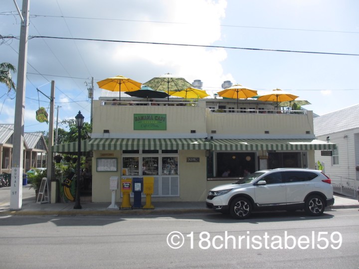 Nach den ersten ansteckenden Eindrücken vom Vortag konnten wir es kaum erwarten, Key West zu erkunden. Auf Empfehlung unseres Guest Houses waren wir im Banana Café frühstücken. Das ist ein kleines französisch angehauchtes Café mit allerlei lecker Frühstücksvariationen (Eier in allen Varianten, Bagels, Waffeln, Sandwiches, Pancakes…), die eher amerikanisch angehaucht sind als französisch. Aber das Interieur war sehr französisch geprägt und urgemütlich. Die Besitzerin sprach auch etwas Französisch. Es war superlecker und frisch, Kaffee gab’s mit Nachschenken, die Preise sind echt ok.