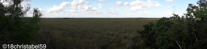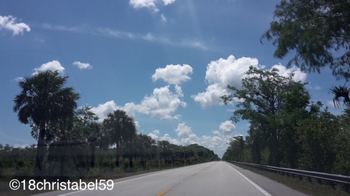 Wir sind dann die Strasse bis zum Ende nach Flamingo gefahren. Die Landschaft ist hier recht wiederholend, hohes Gras, weite Ebene, vereinzelte Bäume, Büsche oder Palmen und Wälder, die den Strassenrand säumen. Ab und zu gibt es mal einen Teich, einen Wanderweg, eine Abzweigung zu Aussichtspunkten.