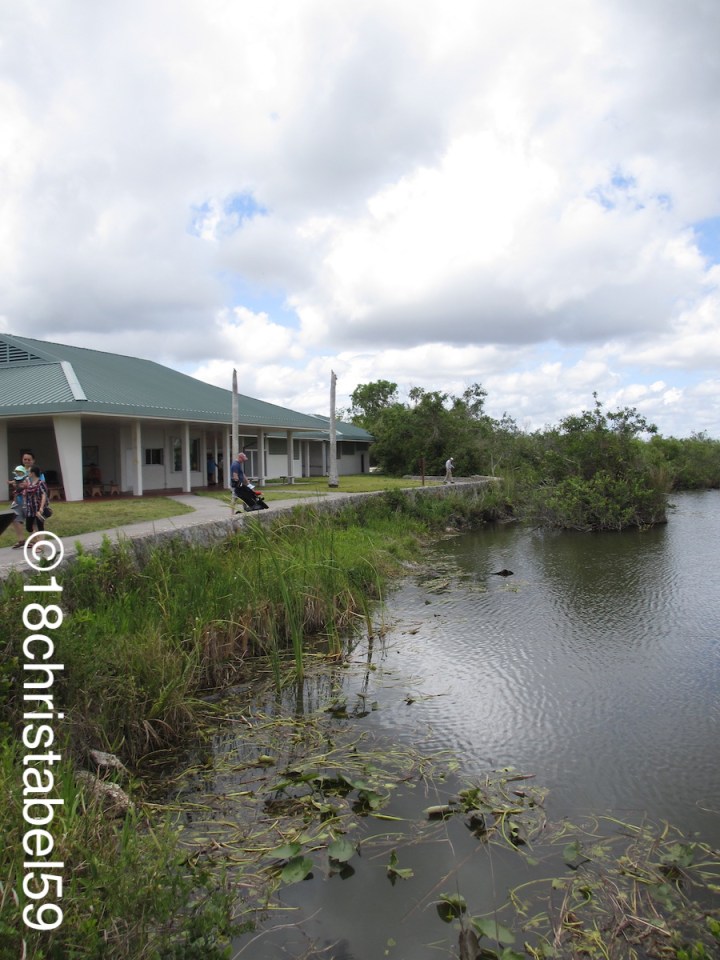 Wir sind dann direkt zum südlichen Eingang des Everglades National Parks gefahren, dem Ernest F. Coe Visitor Center bei Florida City, wo man wirklich viel über die Fauna und Flora in den Sümpfen der Everglades erfährt. Ein Blick lohnt sich, die Info ist ausreichend und übersichtlich und ausserdem gibt es noch Ranger, die gern Fragen beantworten. Vom Visitor Center sind es nochmal 500 m bis zum Eingang, wo man pro Auto eine Eintrittsgebühr von $25 bezahlt, die aber sechs Tage gültig ist. Ist ja für einen guten Zweck. Wir haben gleich mal am Touri-Stop Nr. 1 angehalten, Royal Palm, von dem die Rangerin im Visitor Center meinte, dass man da garantiert Alligatoren sieht. Wir so, naja, werden wir ja merken.