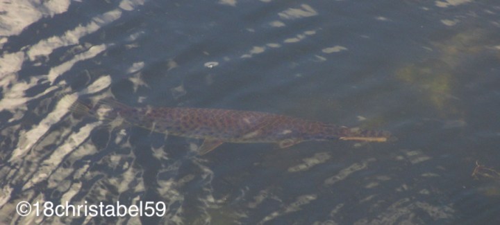 Wir haben wieder Anhingas und Reiher, viele Fische und Schildes beim Sonnenbaden gesehen, auch viele Alligatoren, die keine 3m vom Wegesrand (dieses Mal ohne Zaun) am seichten Ufer lagen und sich „bräunten“. Ganz aufregend waren die drei kleinen Baby-Alligatoren, die wie in einer Gang den Fluss entlang geschwommen sind. So Zucker.