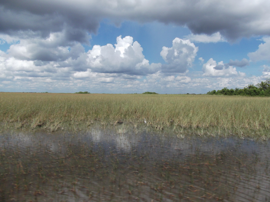 Jedes Mal, wenn ein Tier oder Tiere in der Nähe waren, hat der Guide die Geschwindigkeit sehr gedrosselt und ist an den Tieren vorbei geschwommen. Aber wenn mal freie Fahrt möglich war, wurde Gas gegeben, aber nicht übertrieben. Und dann ist es schon ein cooles Gefühl, so durch die Everglades zu schippern, mit dem Fahrtwind um die Nase, dem vorbei rauschenden Schilf, den natürlichen Wasserstrassen, in den sich der blaue Himmel mit Schäfchenwolken spiegelt.