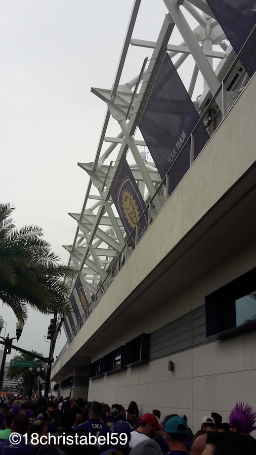 Mein Freund hatte Karten für Major League Soccer (MLS) über Stubhub für $22 besorgt, natürlich im Fanblock von Orlando City. Der ist ganz leicht an dem Meer aus Lila und Violett zu erkennen. In der Warteschlange kann das Fashion-Auge erkennen, dass man alles in Lila tragen kann, von Schuhen, Socken über Kilt, Ärmeltattoos, ganzen Anzug, Trikot bis Perücke, Einhornkappe oder lila Iro-Perücke. Die Fans geben hier alles, nicht nur optisch, und sind wirklich volle Kanne dabei, ihr Team zu unterstützen und die Gegner mit den wunderbarsten Schimpfwörtern auszubuhen. Lustig war, als sich der komplette Block verbal auf einen Atlanta-Fan stürzte, der im Trikot nahe der Fankurve Platz nahm. Er nahm es mit einem Lächeln, aber ich hab selten so viele Mittelfinger und Flüche gehört. Leider haben die alle durcheinander gebrüllt, sonst hätte ich vielleicht noch ne neue Vokabel lernen können, aber naja.