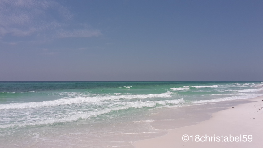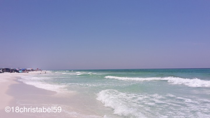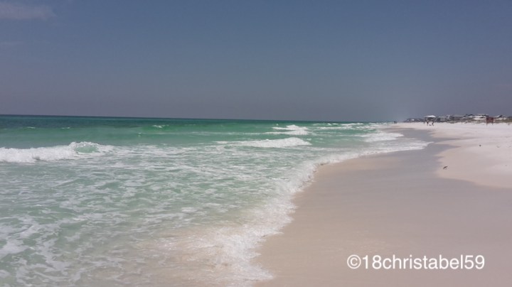 Und OHOOO: Mein Freund war vor mir komplett in den Wellen, mit beherztem Sprung ging es in das flache, angenehm warme, erfrischende Nass und – hops – über die Wellen. Er hatte Megaspass, sich von den Wellen treiben zu lassen. Das Wasser war echt ein Traum, mit Salz. Der Wind wehte, das Salze klebte mehr und mehr auf der Haut, was sich aber erst später im Auto nahnah einer feinen weissen Schicht auf der Haut zeigte. Insgesamt war es einfach wunderschön an Grayton Beach. So haben wir ein paar Stunden am Strand rumgedöst, gelesen und nochmal geplantscht.