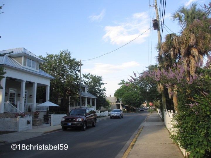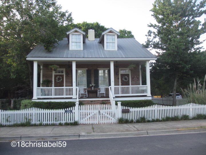 Dann sind wir noch durch ein paar Strassen gebummelt, in denen jedes Haus süsser war als das andere. Hier herrschte eine friedliche, verschlafene Ruhe mit Dorfcharakter, so dass man gar nicht auf die Idee hätte kommen können, dass hier „Stadt“ ist. War’s aber. An den historischen Häusern waren dunkelbraune Tafeln angebracht, die das Jahr bezifferten. Meistens waren die Häuser vom Ende des 19. Jh. (Amerikaner haben ein anderes Verständnis von „historisch“ als wir Europäer), aber alle Häuser waren so schön, dass das mit dem Alter voll egal war. Sie hatten verzierte Borden an den Verandas, auf denen noch Schaukelstühle standen, mit Blick in den kleinen, gepflegten, teils bunt blühenden Vorgarten oder mit der amerikanischen Flagge davor.