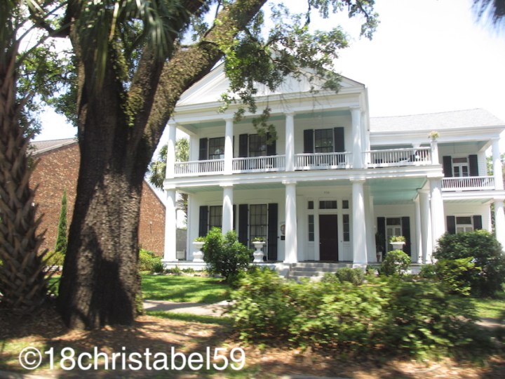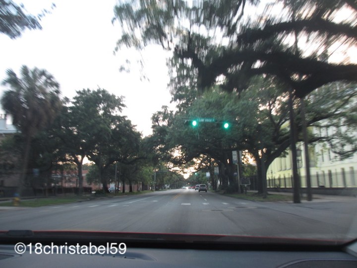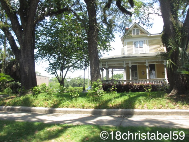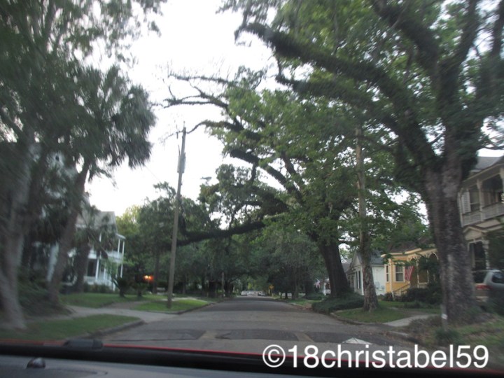 Es wurde aber noch besser, denn an der Government Street reiht sich eine fette, historische Villa nach der anderen mit jeweils einem kleinen oder grösseren Vorgarten an der Strasse. Ich wusste nicht, wohin ich als erstes fotografieren sollte. Links, rechts, nach vorne. So aufregend. Zudem ist die Strasse eine Allee mit alten, knochigen Bäumen, deren mit Farn bewachsene Äste über die Strasse reichen. Das macht das ganze Strassenbild noch verwunschener, gemütlicher und einfach nur typisch südstaatenmässig. Ganz nach dem Motto „Vom Winde verweht“.