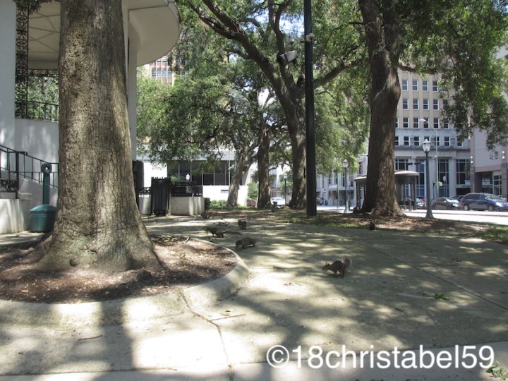 Eine Art Grossstadtfeeling kam nur durch die paar Hochhäuser am Wasser nahe dem Messegelände (Convention Center) auf, aber sonst hat Mobile eher einen wirklich charmanten Kleinstadtcharakter mit vielen Parks und fetten Eichhörnchen, die sich durch die verstreuten Erdnüsse am Belleville Square gefüttert haben. Etwas kurios war noch der ägyptische Tempel der Freimaurer mit zwei kleinen Sphinx davor, der in einer N Claiborne St, einer Seitenstrasse der Dauphin Street, etwas dominant hervorsticht. Das Warum haben wir auch nicht verstanden. Der Tempel war halt da und weil die Freimaurer es halt einfach konnten…