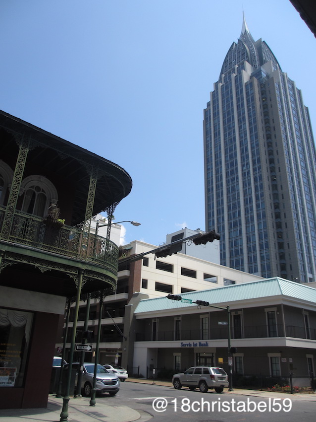 Kurz bevor wir in die Stadt kamen, führte die Strasse in einen Tunnel unter dem Alabama River durch und kommt dann direkt auf der Goverment Street in Downtown raus und wird von prachtvollen historischen Gebäuden mit fetten Säulenfronten oder schmiedeeisernen Balkonen empfangen. Das war mal n Auftritt: Hallo Alabama.