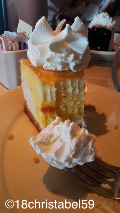 Für uns ging es dann weiter die Riveroad LA18 entlang, bis das Navi meinte „Hier links“ und wir am Ende einer Brücke ankamen, die nicht mehr da war. Anscheinend wurde die nach dem letzten Sturm nicht mehr aufgebaut, also ging es weiter die richtig befestigte Landstrasse entlang, bis wir wieder auf der Interstate 10 waren, die uns nach New Orleans führte, oder NOLA (New Orleans, LouisianA), wie die Einheimischen hier liebevoll sagen. Und kurz bevor wir uns in den Stadtverkehr stürzten, haben wir noch n Besuch abgestattet, der längst überfällig war: in der Cheesecake Factory. Eine Restaurantkette, die ihrem Namen alle Ehre macht, bei der man aber auch „herzhaft und normal“ essen kann (Burger etc.). Aber der Laden bietet halt echt so 30 Sorten Käsekuchen in den verrücktesten Varianten an. Wir hatten weisse Schoki Himbeere und Mango Limone – boah war mir schlecht, sehr süss, auch die Schlagsahne oben drauf.