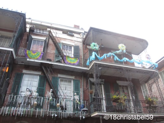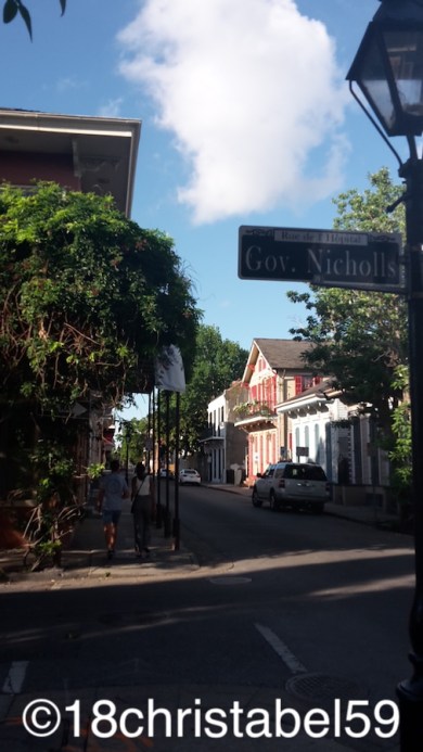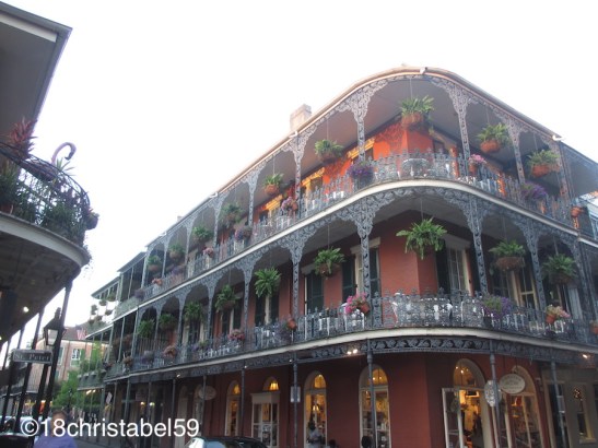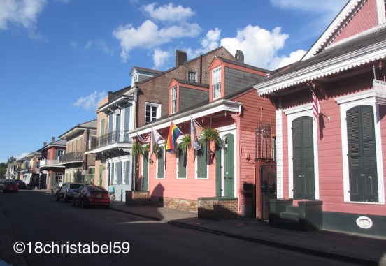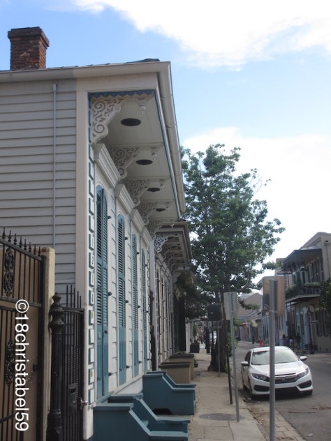 Das Gute ist, dass man da im Zentrum ab so 19 Uhr kostenlos parken kann, sonst läppert es sich. Und an der Esplanade Avenue kann man tagsüber 2 Stunden sicher kostenlos parken. Also sind wir durch eine Seitenstrasse in das berühmteste Viertel der Stadt. Ins Auge fallen gleich die kleinen, historischen Holzhäuschen, auf die sich in den engen Gassen aneinander quetschen und in pastellfarben und verschiedenen Holzverzierungen unterscheiden. Ebenso reizvoll sind die vielen gusseisernen, runden Balkone, die den Häusern ihren besonderen Charme verleihen, so wie man es aus Filmen und von Postkarten kennt. An der Hauptstrasse – Bourbon Street – gibt es echt schöne Gebäude aus dem 17. Jahrhundert, bei denen die verschnörkelten Balkone rund um die Fassade reichen und voll mit blühenden Blumen geschmückt sind.