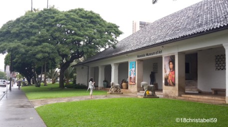Eigentlich wollte ich mir Downtown Honolulu ansehen, aber da es hat so dusselig von oben war, habe ich mich fürs Kunstmuseum entschieden: das Honolulu Museum of Art (Eintritt $20, Di-So 10.00-16.30 Uhr). Was willste sonst bei Giesskannenwetter machen? Hauptsache Kultur und was sehen. Und es war wenigstens nicht kalt. Mit dem Taxi und einem sehr freundlichen Fahrer ging es durch den Berufsverkehr in die Stadt (Taxi-Flat in die / aus der Stadt für $25 pro Richtung, nicht bescheissen lassen!).