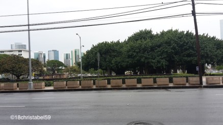 Gut, machste nichts wegen dem Wetter. Darauf hatte ich mich ja vorher schon eingestellt. Auf Hawaii ist gerade Winter. Winter ist hier die „Regenzeit“ und damit kann es mal durchschnittlich bis zu 9 Tage im Monat giessen. Da ich noch den Vormittag Zeit hatte, bevor ich meinen Freund und seinen Bruder am Flughafen traf, hab ich mir ein Taxi rufen lassen und bin in die Stadt gefahren, um Kultur zu erleben. Gut zu wissen ist, dass es eine Taxi-Flatrate von $25 in die Stadt gibt. Nicht von den asiatisch aussehenden Taxifahren sich in die Irre führen lassen, die tun so, als wüssten sie von nix und geben erst nach, wenn man die Flatrate direkt anspricht.