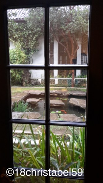 Meine erste Nacht auf der Insel verlief recht ruhig, bis auf das Rauschen am Fenster. Könnte das Fenster oder die Klima gewesen sein. Egal, als ich morgens zu normaler Stunde aufgewacht bin, war es draussen zwar hell, aber Sonnenschein sieht eigentlich anders aus. Es goss in Strömen auf den lapislazuliblauen Pool mit seinen drei gefliesten Schildkröten, der in dem Grau seiner betonierten Umgebung für einen freundlichen Farbtupfer in der Landschaft sorgte.