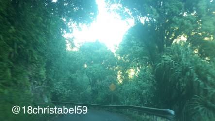 Aber als wir da so durch den Dschungel in der Dämmerung zurückgefahren sind, hat der gold-orangene Schimmer der untergehenden Sonne dem grünen Dickicht und engen Strassen einen Hauch mehr Feenhaftes verliehen, wie bei Prinzessin Monoke oder Dornröschen. Die Kurven mit dem buschigen Hängen und herunterhängenden Ästen wirkten richtig verwunschen, wie in einer anderen Welt. Das war für mich die Road to Hana, die Road to Heaven, denn ich hab selten so was Faszinierendes und Magisches erlebt.