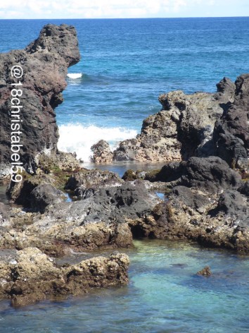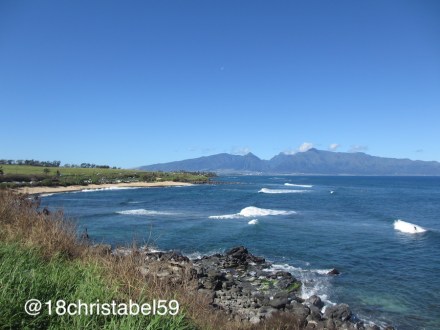 Nach der kleinen Western-Stadt Paia war erster Stop der Ho’okipa Lookout. Das ist ein Aussichtspunkt an einem unscheinbaren Parkplatz mit traumhaften Blick auf die gleichnamige Sandbucht, die grünen Berge und grauen Klippen hinter Kahului sowie das rauschende Meer. Wie all die anderen Touris sind auch wir die Klippen zum steinigen Lavaufer runtergeklettert, wo sich die Wellen im glasklaren, türkisen Wasser an den graubraunen Felsen mit weisser Gischt brachen. Dazu noch der Wind und die Sonne und – hach!