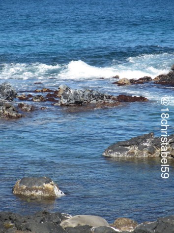 Aber dann hat mich ein netter älterer Herr auf etwas aufmerksam – die Bewohner der Bucht: eine Mönchsrobbe, die sich in der Sonne aalte, sowie eine Meeresschildkröte an Land. Hat man einmal eine Schildkröte gesehen, dann hält man die Augen noch besser auf. Danach habe ich noch mehr Schildis gesehen, sogar eine kleine, dann noch eine grosse schwarze Krabbe und eine zweite Mönchsrobbe, die galant aus dem Meer auf die Felsen robbte, um dann da wie ein Felsbrocken liegen zu bleiben. Es war der perfekte erste Eindruck von Maui.