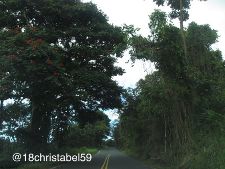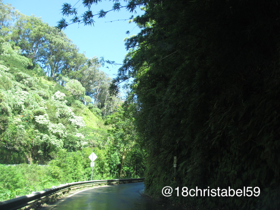 Die Road to Heaven – wie der Weg nach Hana auch genannt wird – brachte uns gefühlt immer tiefer in das dichte Grün, denn die Hütten am Strassenrand wurden immer weniger, es gab ein paar kleine Cafés, Food- oder Obststände, die mit Bananenbrot oder Ananas Touristen anlockten. Je weiter wir nach Osten kamen, desto kurvenreicher wurde die Strasse nach Hana – gefühlt auch immer schmaler. Für uns Europäer und Einheimische sind das ja normale Zustände, aber für die Touri-Amis – nunja, sie hatten so ihre Problemchen. Rechts ranfahren war für sie etwas schwierig, oder die Kurven auszufahren. Das war amüsant. Für uns.