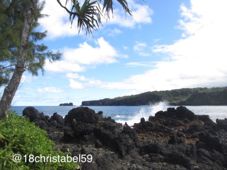 Es lohnte sich auch einen Abstecher nach Keanae zu machen, einem klitzekleinen Örtchen, das aus ca. 15 Holzhütten und einer kleinen, alten Kirche besteht – und einem Klohäuschen. Der Ausblick auf die Klippen und Küste zwischen den einzelnen Palmen war wirklich schön. Das Rauschen der Wellen gegen die Felsen war so beruhigend.