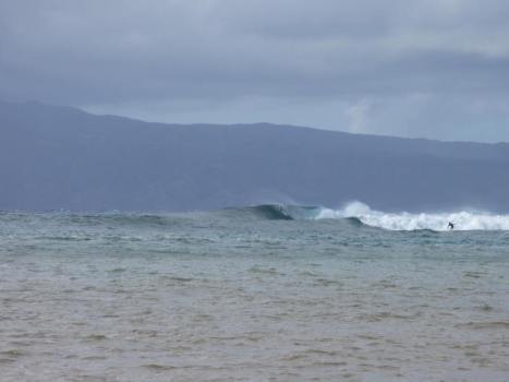 Na jut, dieser Privatstrand war schon eher nicht so öffentlich wie andere Strände, aber sandig is was anderes. Das war ein Steinstrand, nix Kiesel, faustgrosse Steine! lagen da rum, das Wasser war usselig und hatte hohe Wellen. Baden war hier also nicht. Dafür konnten wir verrückte Surfer beobachten, die von dem Strand hier vor zu den höheren Wellen vorgepaddelt sind, um sich dann mit den anderen Surfern die 4-5m hohen Wellen zu teilen. Verrückt die Leute.